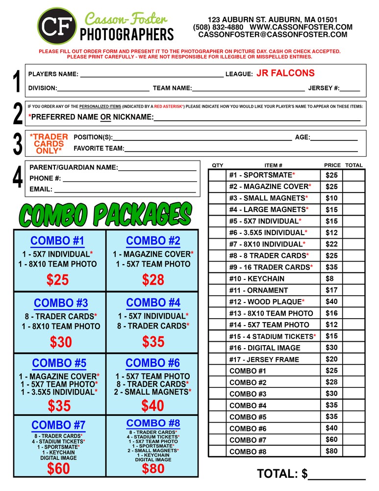 Attached is the order form to print and bring with your player to practice. This is also on the front page of the website incase you need to access it there.